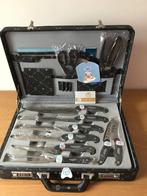 Malette contenant un set de couverts en acier inoxydable (ne rouille pas) de 24 pièces 1 couteau pizza, 1 couteau à fromage, 4 grand couteaux à découper, 1 fourchette de service, 1 couteau à pain, 2 ciseaux, 1 couperet, 1 taille-crayon, 6 couteaux et ...