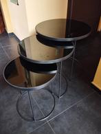 - Tables gigognes métal et verre3 tables gigognes en métal noir et plateau en verre noir structuré (effet pierre). Dimensions: grande table ( diamètre 61 cm, hauteur : 57 cm). Table moyenne ( diamètre 51 cm, hauteur : 52 cm). TableComme neuf Enlèvement