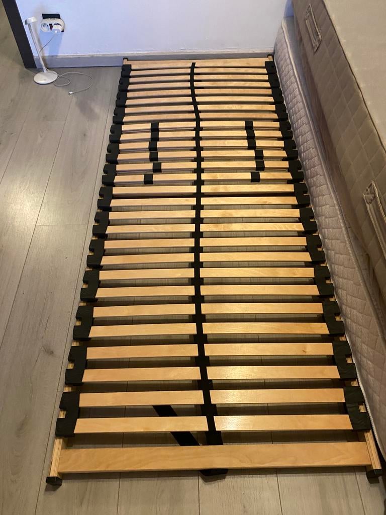 21 févr. 26Monica1642La Louviere - Sommier à lattes réglableSommier à lattes réglable orthopédique avec moteur et telecomande . Occasion mais très bon etat !!! Deux pièces 90x200 cm 04985709566 prix à discuter.Comme neuf Enlèvement Deux personnes