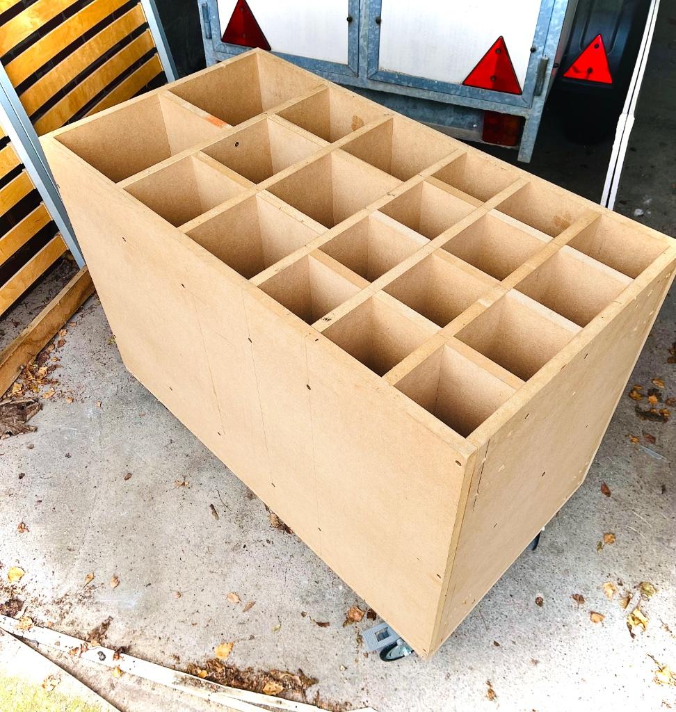- Meuble de rangement en MDF + 4 roulettes - à discuterMeuble de rangement avec compartiments fait sur mesure. Dimenssion du meuble sur base des photos: longeur : 95 cm largeur : 50 cm hauteur 1 horizontal (sans roues) : 64 cm hauteur 2 horizontal (avec rComme neuf Enlèvement