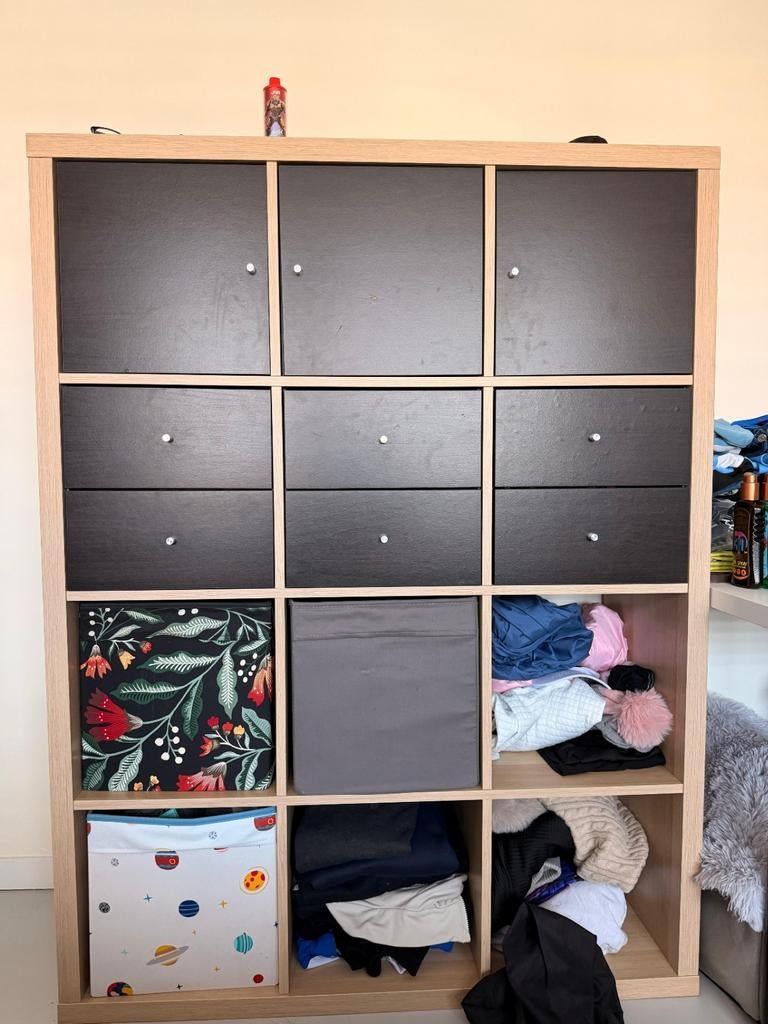 HierFrederique GryspeertHeule - Meuble IKEA KALLAX 2x2 avec portes – très bon étatMeuble ikea kallax 2x2 avec 4 portes, couleur brun/noir. Très pratique pour le rangement (salon, entrée, chambre). ✔ Design moderne et épuré ✔ portes pour cacher le rangement ✔ solide et en très bon éEnlèvement