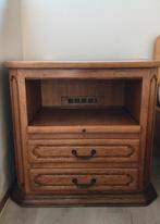 Meuble tv en bois massif, 2 portes rentrantes, tablette tv pivotante 70 cm - 2 clés avec espace de rangement dans le bas fermé par une porte mesures extérieures : ht 1,31 m lg 1,21 m (avec tablette du dessus) lg 0,57 m mesures intérieures, espace tv,...