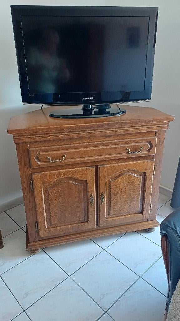 Avant-hierMarysePont-A-Celles - Meuble de télévision à vendreMeuble de télévision en coin en chêne je vends cet objet parce que l'état est comme neuf livré avecComme neuf Enlèvement ou Envoi