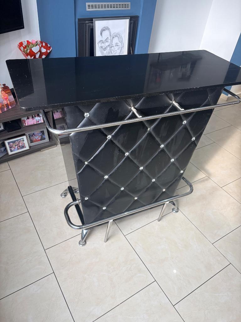 Avant-hierLotteAntwerpen - Bar avec plateau en verre, structure métal + 2 tabouretsJe vends un bar moderne au design élégant, composé d’un plateau en verre et d’une structure en métal robuste. Le bar est accompagné de 2 tabourets assortis, avec assise confortable et repose-pieds. ✔️Enlèvement