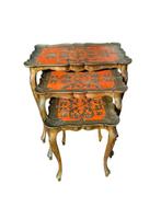 Aujourd'huiAnnonce au topFanDeBDKraainem - Table (3) - Style florentin - CompositeEnsemble de trois tables d’appoint italiennes de style florentin en matériau composites, datées des années 1950, dimensions 57 cm de haut, 55 cm de large et 35 cm de profondeur, en bon état d’usage av