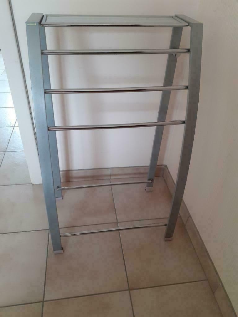 21 févr. 26PijoHoeilaart - Porte-serviettes Allibert gris sur piedsPeut porter plusieurs serviettes, avec étagère en verre au top pour plus de rangement (je l’utilise autant que «valet de chambre»). Dimensions: largeur 55,5 cms hauteur 90,5 cms profondeur 34 cms (auUtilisé Enlèvement