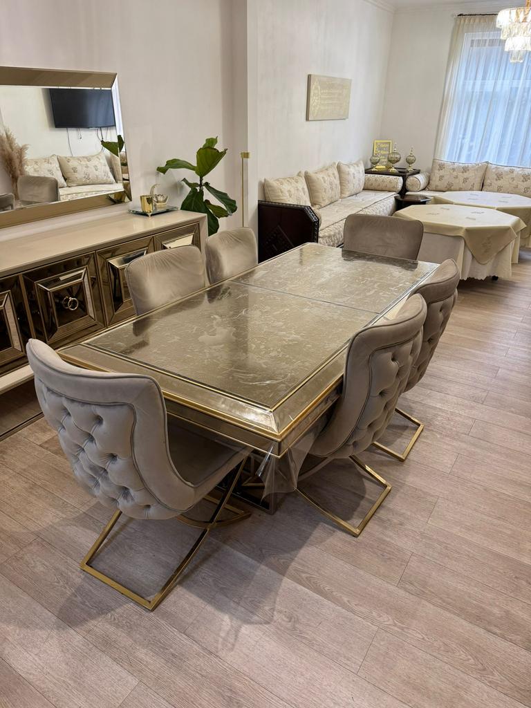 7 avr. 26DamasuAnderlecht - Salle a manger a vendreSalle à manger table en verre et doré 1m80 + chaises + miroir + console en parfaite étatComme neuf Enlèvement