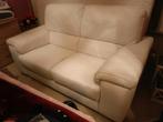 Coin salon complet en cuir de buffle de haute qualité de couleur cognac composé de 3 places, largeur 190 cm, 2 places, largeur 140 cm, largeur du siège unique 140 cm, le cuir de pouf est en bon état : pas de fissures, ni d'usure