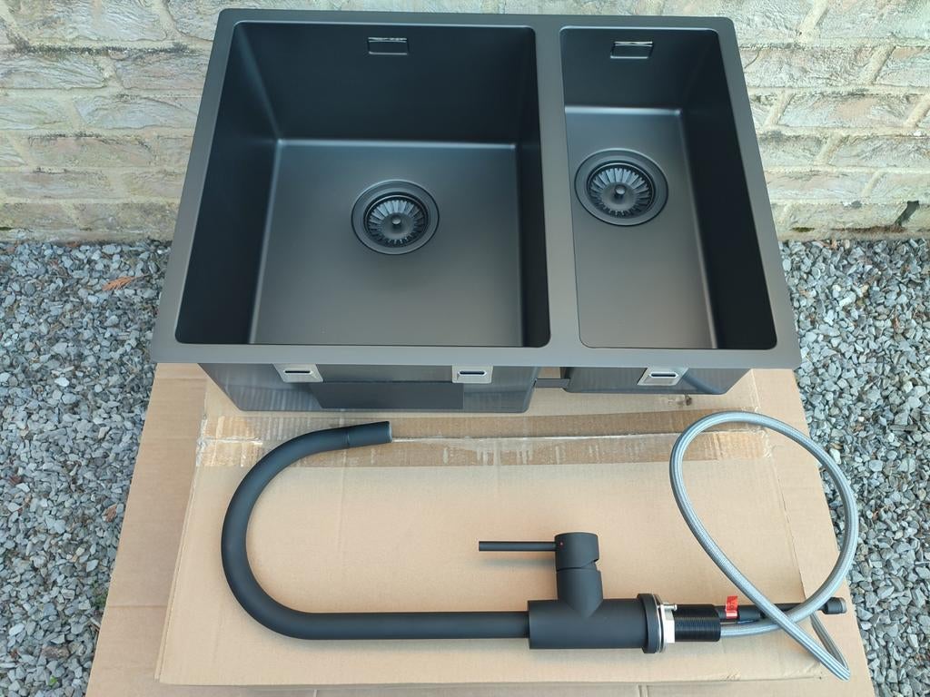 - Ensemble d'évier Lanesto 1 - 1/2 avec robinet noir assortià vendre : ensemble lanesto noir robuste évier 34*40 - 18*40 avec tous les accessoires peut servir de feuille de travail sur la structure, la construction de la surface et la sous-structure robinet deNeuf Enlèvement ou Envoi