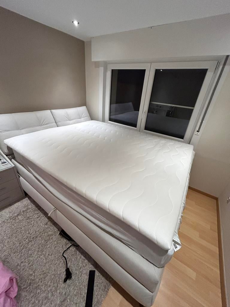 27 mars 26Fredinand EL-ASSMARJette - Lit doubleLit double jysk avec de nombreux espaces de rangement et une tête de lit.(125Cm de haut) 180 x 200 de long x 70 de haut. Un matelas supérieur séparé est placé au-dessus du matelas fixe des deux boxesUtilisé Enlèvement Deux personnes