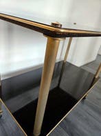 Hierbarbe anoukBilzen - Chariot de service - Aggloméré laqué - Elégante tableélégante table d’appoint à deux plateaux, design français des années 1960, structure en laiton doré et plateaux en bois laqué marron foncé, dimensions 78 cm de largeur, 71 cm de hauteur et 43 cm de pr