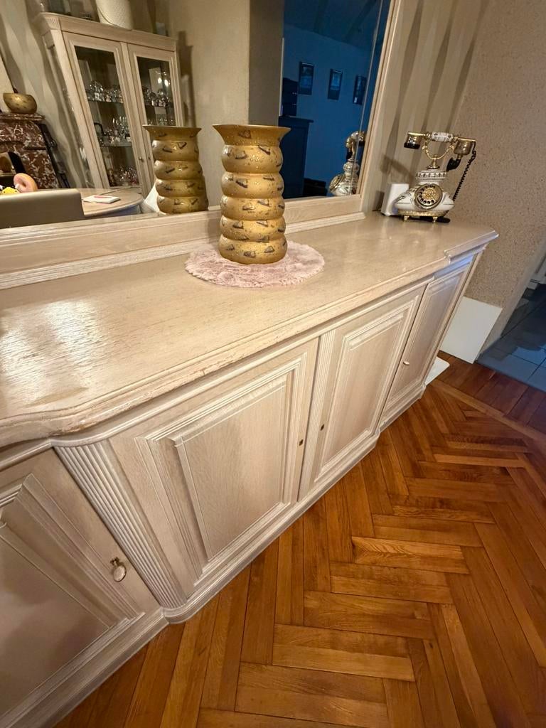 27 mars 26HautenauveLives-Sur-Meuse - MeubleSalle a manger cerisier en bonne état table 6chaises vitrine dressoir miroirs a venir chercher sur bruxelles laeken cause de vente déménagement