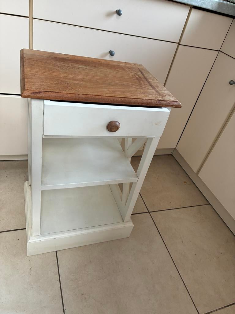 Aujourd'huiisabelle vitellaroManage - Élégante table d’appoint, petit îlot , table de chevetélégante table d’appoint beltima, petit îlot cuisine, table de chevet en bois blanc et naturel. Très bon état affaire à saisir . Largeur: 41 cm ; hauteur : 49 cm; profondeur: 30 cm. À Venir chercher àComme neuf Enlèvement