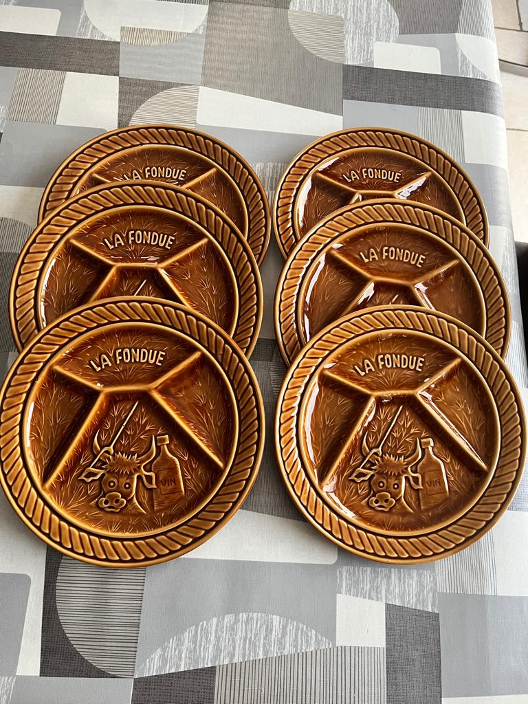 - 2 Sets Assiettes Fondues + Couette .Bonjour , je vends 2 services a fondues ( 6 pièces et 8 pièces )état neuf . Visible en province de liège + cadeau ( housse couette neuve ) .merci .Neuf Enlèvement