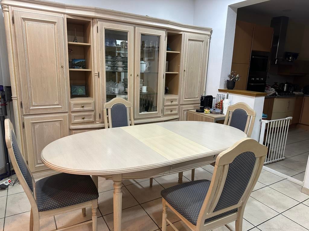 19 févr. 26kristofTienen - Salle à manger complèteBuffet de 2m50 de long vitrine 125 de large bar 90 de large table 190 x 90 cm 6 sièges tout est en bon état, entièrement en chêne, y compris le dos le dessus de table doit être poncé clés present il fEnlèvement ou Envoi
