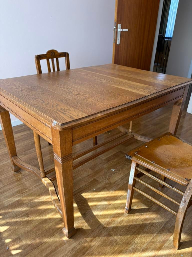 11 mars 26proostBeerse - Gratuit table avec allonge en chêne avec 6 chaisesEtat correct 86x140 sans l allonge se trouve à alleurUtilisé Enlèvement