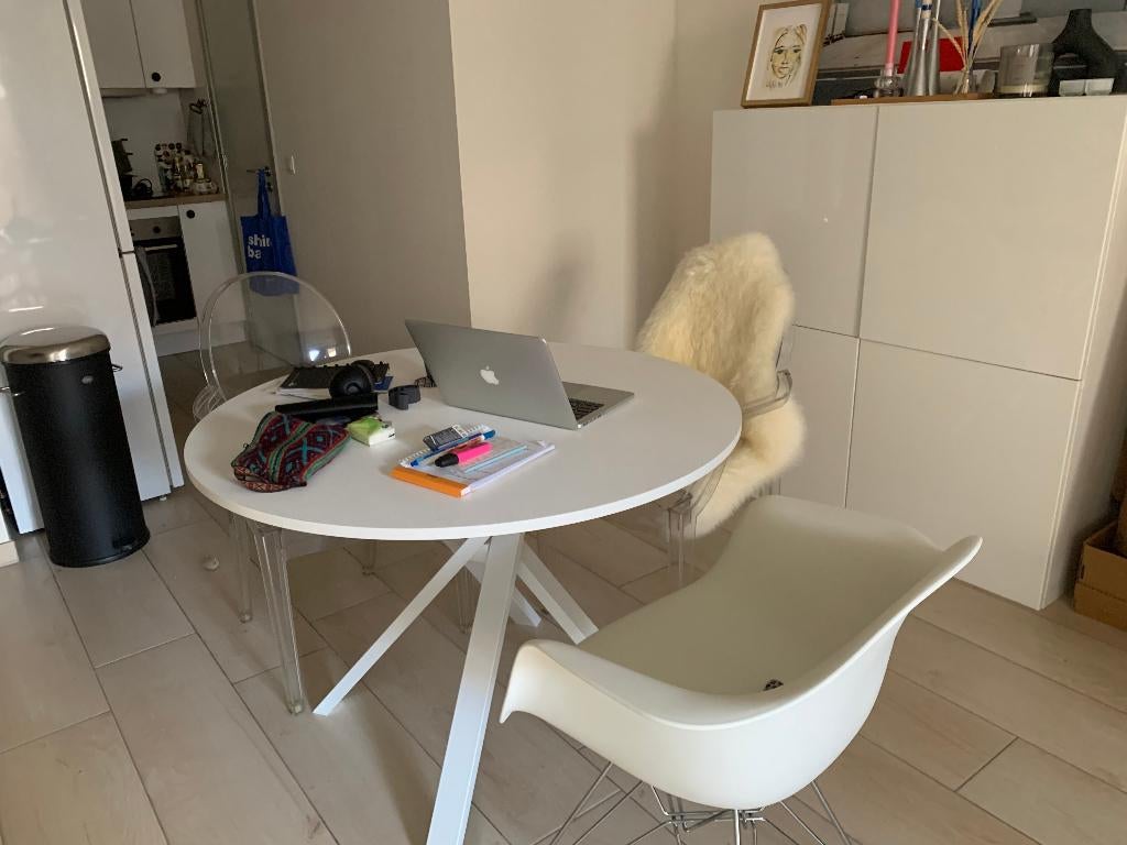 21 janv. 26Mario2ememainKraainem - MARIEDAMM Table ronde blancheLes pieds en métal croisés donnent à cette table un style moderne, qui lui permet de facilement trouver sa place dans toutes les cuisines ou salons. Pour 2 à 4 personnes. Dimensions diamètre: 105 cm hComme neuf Enlèvement Quatre personnes