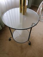 Belle table d'appoint en verre trempé sur 3 roulettes ikea strind, armature en, acier nickelé, diamètre 50 cm, hauteur 62 cm, très bon état.