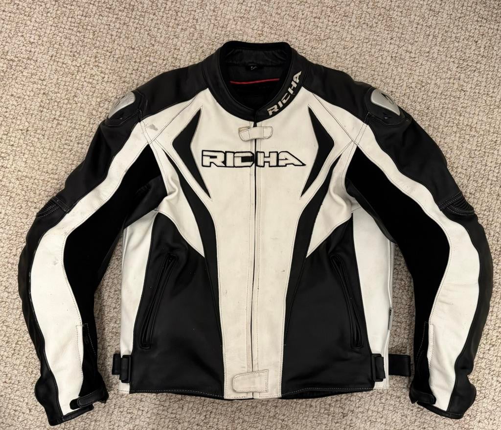 - Veste et pantalon de moto RICHAMotif de la vente : il est devenu trop petit. Pas de fissures, pas de décolorations, tout est en parfait état ! Veste de moto taille : 42 uk pantalon de moto taille : 56Enlèvement