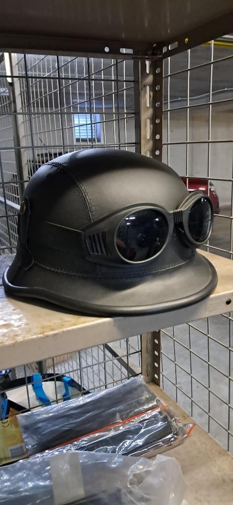 29 mars 26JPBraine-Le-Chateau - Retro motorhelm (zwart – chopper stijl)Zwarte retro motorhelm in chopper/cruiser stijl. Comfortabele pasvorm maat m en ideaal voor liefhebbers van oldschool motoren. Inclusief zonnebril/goggles er moet een nieuwe sluiting op, deze is gebroSeconde main Enlèvement ou Envoi