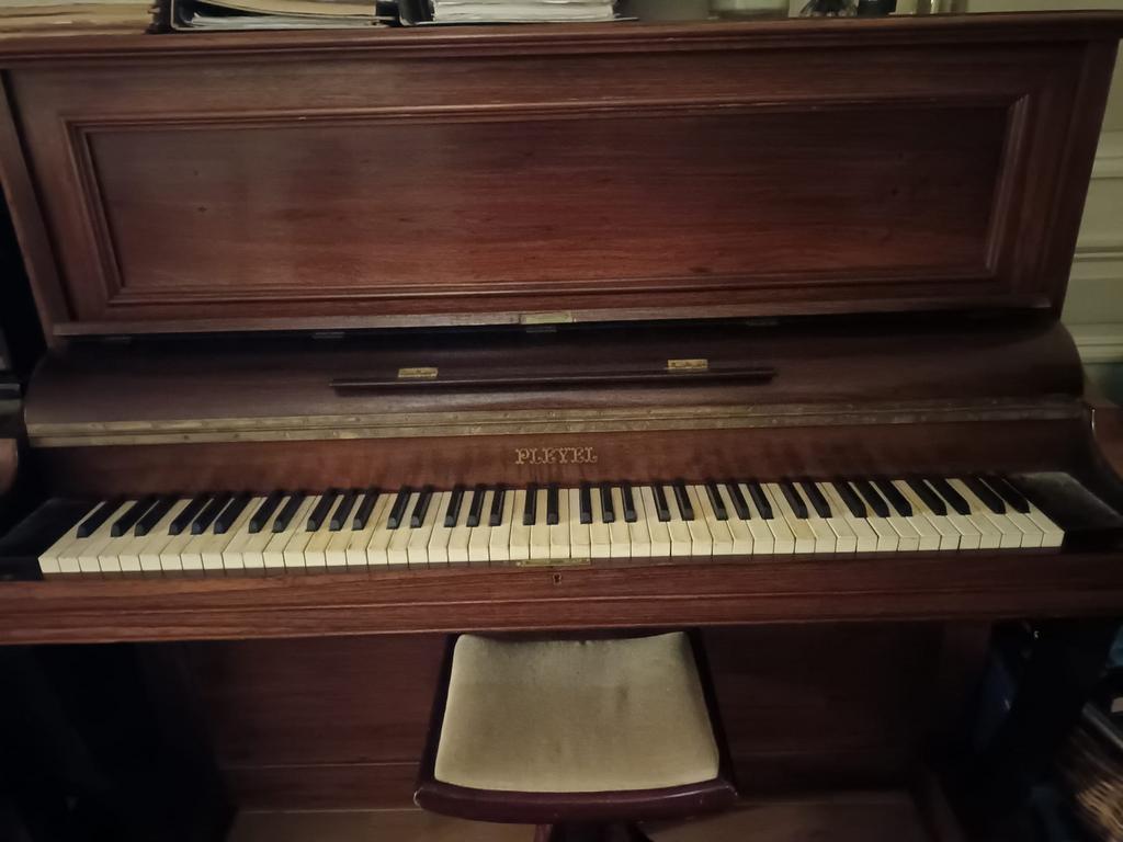 11 mars 26MaryseSchilde - Piano Pleyel ancien (1906) avec certificat + bancà vendre : piano droit de la légendaire maison française pleyel wolff lyon & cie. Fabriqué à paris, année de construction 1906, numéro de matricule 139.869. Caisse en palissandre, modèle n° 6 à coUtilisé Enlèvement