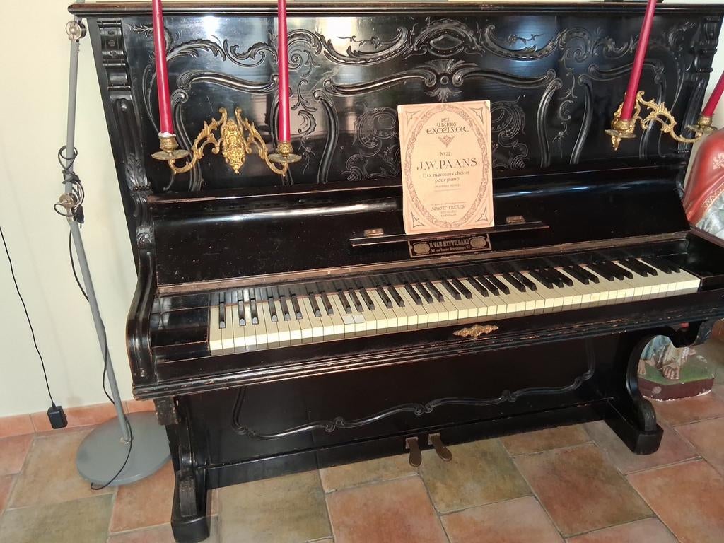 15 févr. 26wimdbZottegem - antieke buffetpianoMooie antieke piano van "justin van hyfte" - belgische makelij van rond de vorige eeuwwisseling en dus een echt collectors item. Van de bovenkant is de vernis grotendeels los gekomen, maar mUtilisé Enlèvement