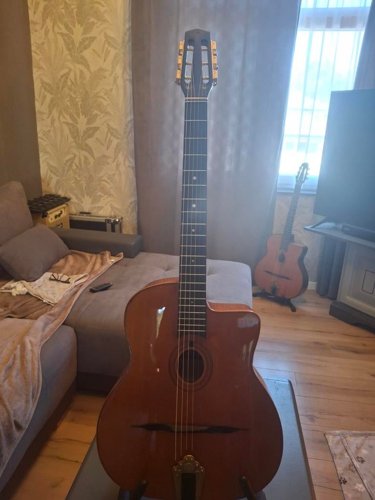 Aujourd'huiNCGlain & Partie Ans - Gallato RS39 Ltd 2022Guitare manouche gallato bonne état, facile à jouer le repère est à la 9eme case et pas à la 10eme comme la plu part des guitare manouche