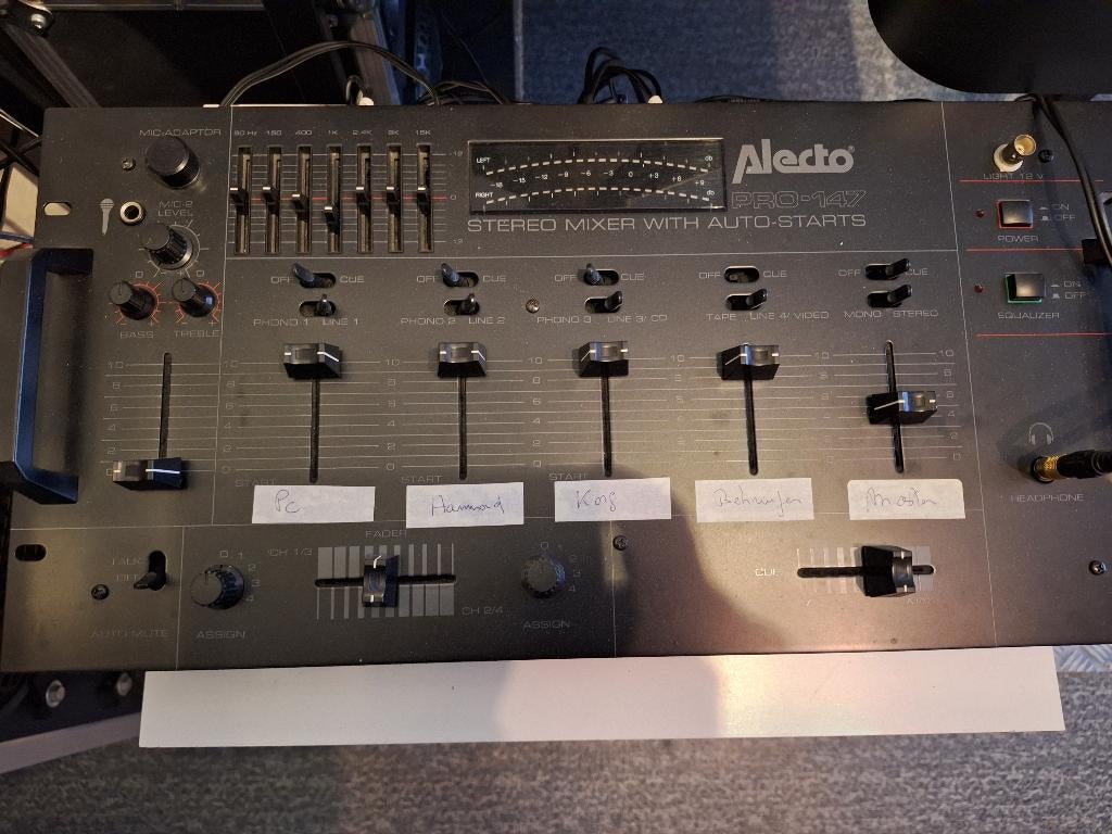 - Table de mixageTable de mixage 4 entrées line/phono entrée micro equaliseur vu-mètre à led connecteurs cinch occasion mais en parfait état de fonctionnement enlèvement paiement en cashUtilisé Enlèvement