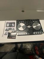 De controller werkt met virtual dj. Er zit een cd om het programma te installeren bij. Hij zit in een case en de originele doos is er ook nog.