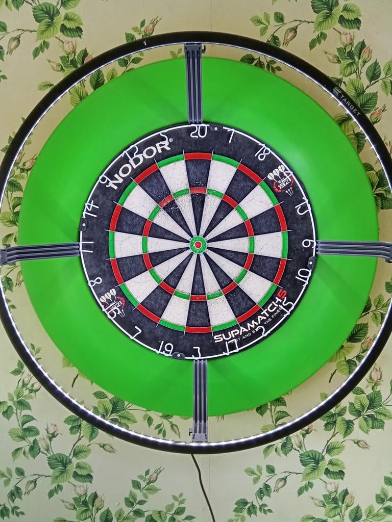 - Jeu de fléchettes avec lumières et tapis.Jeu de fléchettes avec éclairage led sur saumure et tapis réglables. Cueillette uniquement.Enlèvement