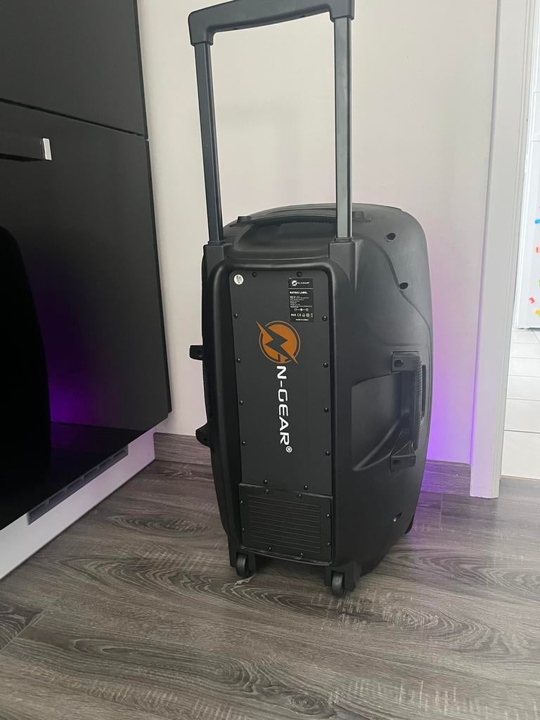 Avant-hierGregHerseaux - Enceinte N-Gear The Flash 1510Enceinte trolley grand modèle 30 w rms 500 w max spectacle de lumière bluetooth karaoké 2 micros 13 kg autonomie batterie 120 à 360 min trop peu utilisée, batterie neuve installée pour la vente 150 euComme neuf Enlèvement