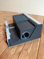 - Sawyers 500R ProjectorSawyer's 500r diaprojector, redelijk conditie, getest en werkend, met vier rototray-magazijnen van elk 100 dia's en één recht magazijn van 36 dia's, totaal 436 dia's; lamp 220v 500w, g