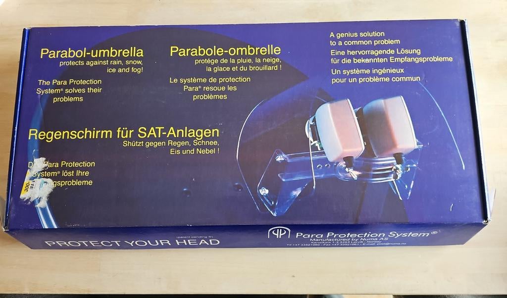 - Goobay 67190 Protection tête parabole neuveGoobay 67190. Couleur du produit: transparent, matériel: acrylonitrile-butadiène-styrène (abs), polypropylène (pp). Poids: 396 g le couvercle de protection contre les intempéries du lnb garantit une iEnlèvement