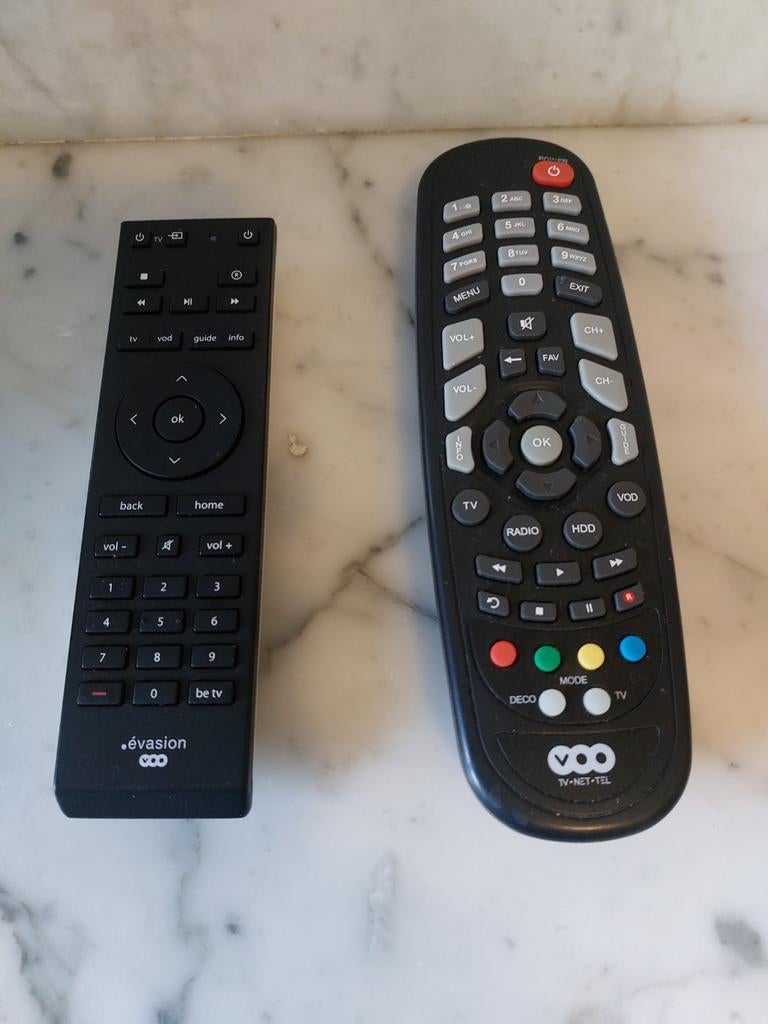 - Télécommandes box VOOA vendre 2 télécommandes pour box voo évasion et classique. Très bon état. 15€ pièce. 25 Pour les 2Enlèvement ou Envoi