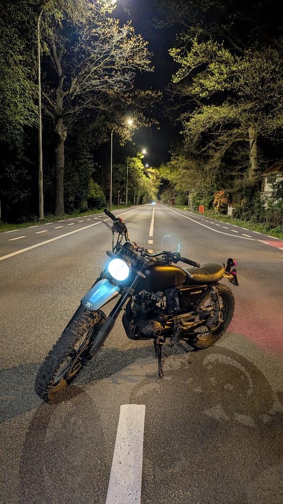 7 avr. 26JuanacGistel+Deel Westkerke - 50cc Scrambler50cc scrambler, +-12000 km, niet super veel werk aan nodig. Reed perfect maar ketting moet veranderd worden, elektriciteit moet onderhoud krijgen. Staat 3 jaar stil, start dus niet. Projectje… biedenUtilisé Enlèvement12.000 km