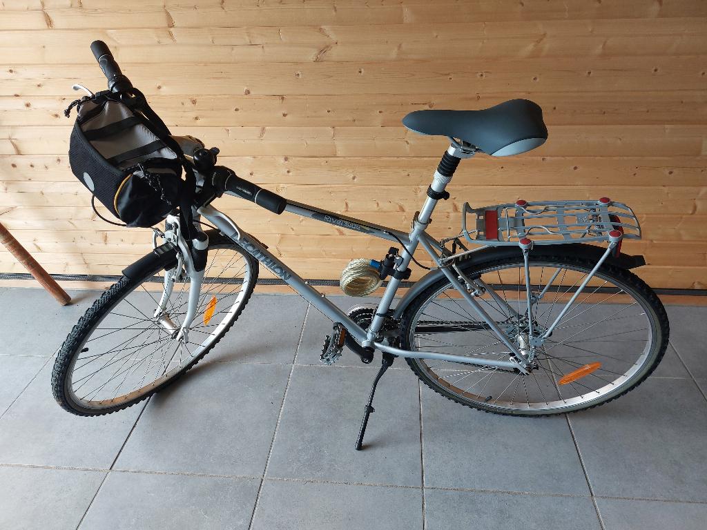 - Vélo Décathlon "Riverside" homme taille MVélo décathlon "riverside" homme taille m, très peu utilisé, état neuf avec porte-bagages, sacoche amovible.Comme neuf Enlèvement