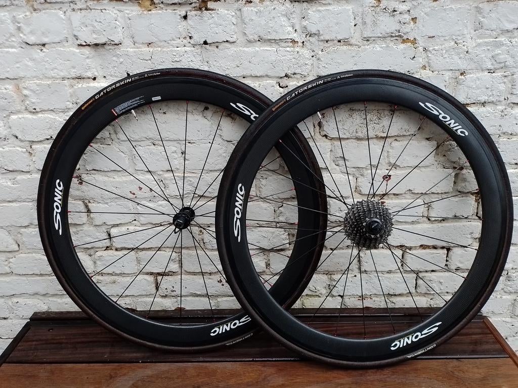 - Paire de roues Sonic carbonePaire de roues en carbone sonic hyper 50mm à boyaux. Cassette shimano ultegra 11 vitesses 11-32. Vendues dans la housse d'origine avec deux paires de patins shimano dura-ace dont une neuve dans l&Enlèvement