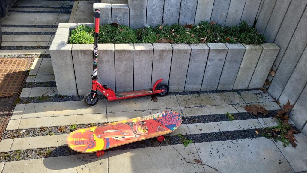 - Trotinette et skateboardPrix demandé 5€. À Retirer à roosdaal ou à sprimont, les frais de port ne sont pas inclus.Utilisé Enlèvement