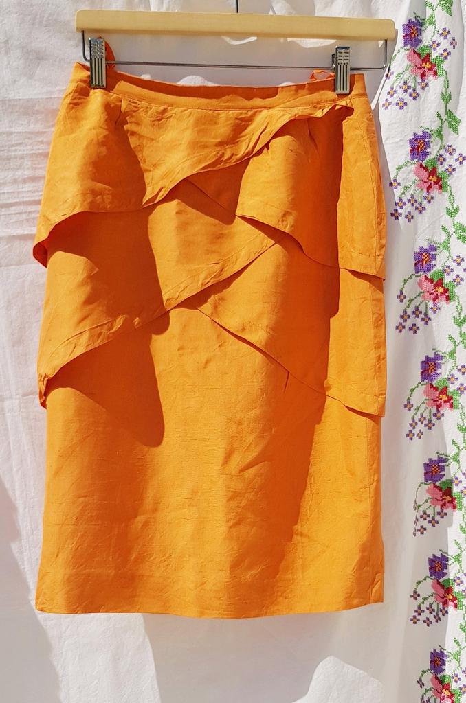- Jupe vintage orange GUY Laroche 100% SOIEJolie jupe vintage guy laroche 100% soie. Taille 34( 34 légèrement grand) léger aspect texturé sur le tissu ( voir dernière photo). La couleur n'est pas fluo...C'est un orange moins vif.Porté