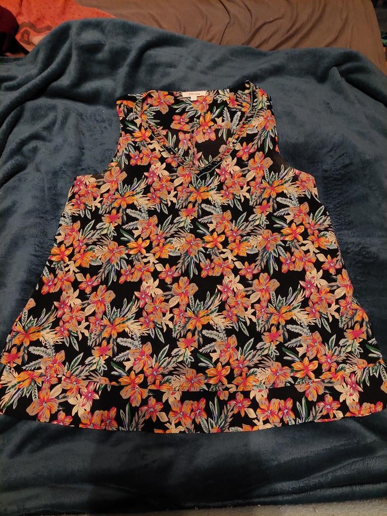 Avant-hierDevendtBierges - Top coloréTop a fleurs coloré sans manches. Petites perles sur encollure devant. Paprika. Taille 1. Largeur sous aisselles 52cm. Longueur 65cm et71cm dos.l'état est impeccable.Enlèvement