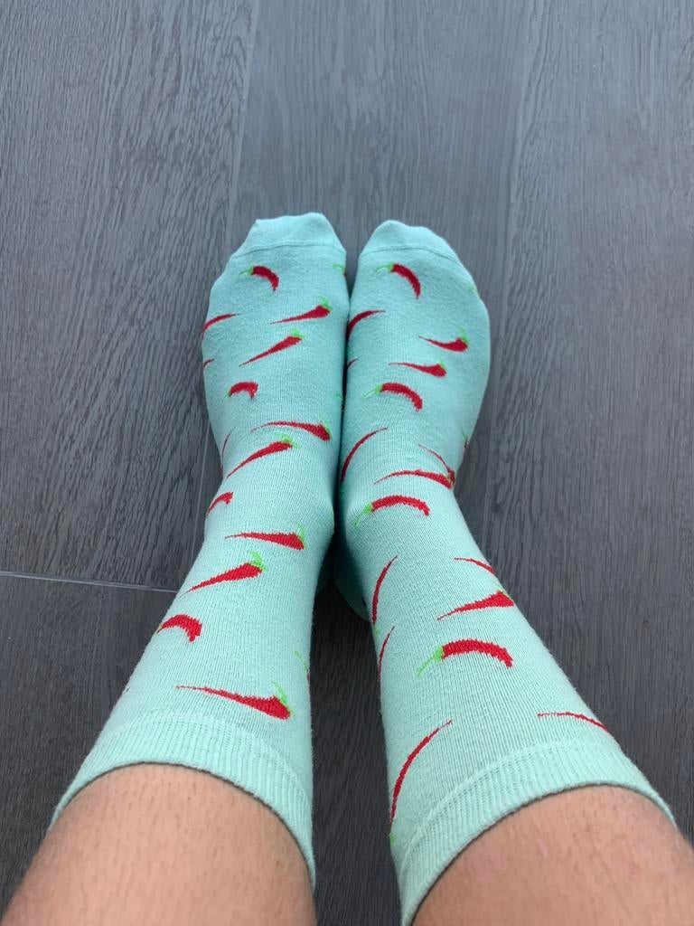 - Chaussettes vertes avec poivron rouge taille 43Chaussettes vertes avec poivron rouge taille 43Comme neuf Enlèvement ou Envoi