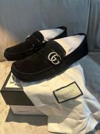 Gucci instappers in daim uitvoering splinternieuw maat 9 (43) zwarte kleur met metalen gespen prijs 500 euro afhalen regio gent ( sint denijs westrem , sint martens latem )