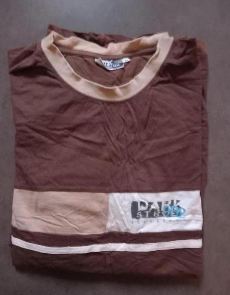 Avant-hierverheyen miaHamont - Bruine pyjama met beige korte broek van Perlina, MBruine pyjama met beige korte broek van perlina, m 100 % katoen bruin shirt met vooraan tekst: - breedte (onder de armen) is 57 cm - lengte (vanaf hals) is 67 cm beige korte broek : - breedte band (elComme neuf Enlèvement ou Envoi