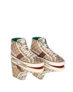 12 mars 26EllenWMuizen - Gucci - Tennis 1977 - Sneakers - Maat: EU 42Gucci tennis 1977 hoge sneakers voor heren, gemaakt in italië in beige canvas met een groenrode web-streep, maat eu 42, in goede staat met zichtbare tekenen van gebruik aan zool en kraag en met origin