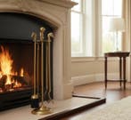 2 avr. 26ChrisDendermonde - Openhaard accessoire - Paardenkoppen - NeoclassistischeEen geelkoperachtig messingen neoclassicistisch haaient hoofdtype haardservant van maison jansen, frankrijk, uit de jaren 1950, compleet met vier accessoires en in uitstekende staat, hoogte 66 cm. Pra