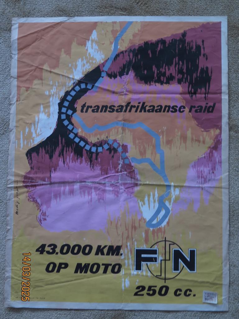 3 mars 26NicnicSint-Michiels - AFFICHE FN RAID TRANSAFRICAIN 1957Affiche 80 x 60 cm avec une moto fn 250 cc à travers l'afriqueEnvoi