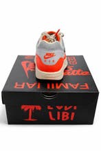 22 mars 26Pub au topCatawikiToute la Belgique - Nike - Nike Air Max 1 x Patta – “Hyper Crimson” - Sneakers -Nike air max 1 x patta – “hyper crimson” (2026), beperkte editie, nieuw met label, herenkostuum, gemaakt in china, bovendeel van grijze mesh met hyper crimson golvende mudguard, zwarte swoosh en crème