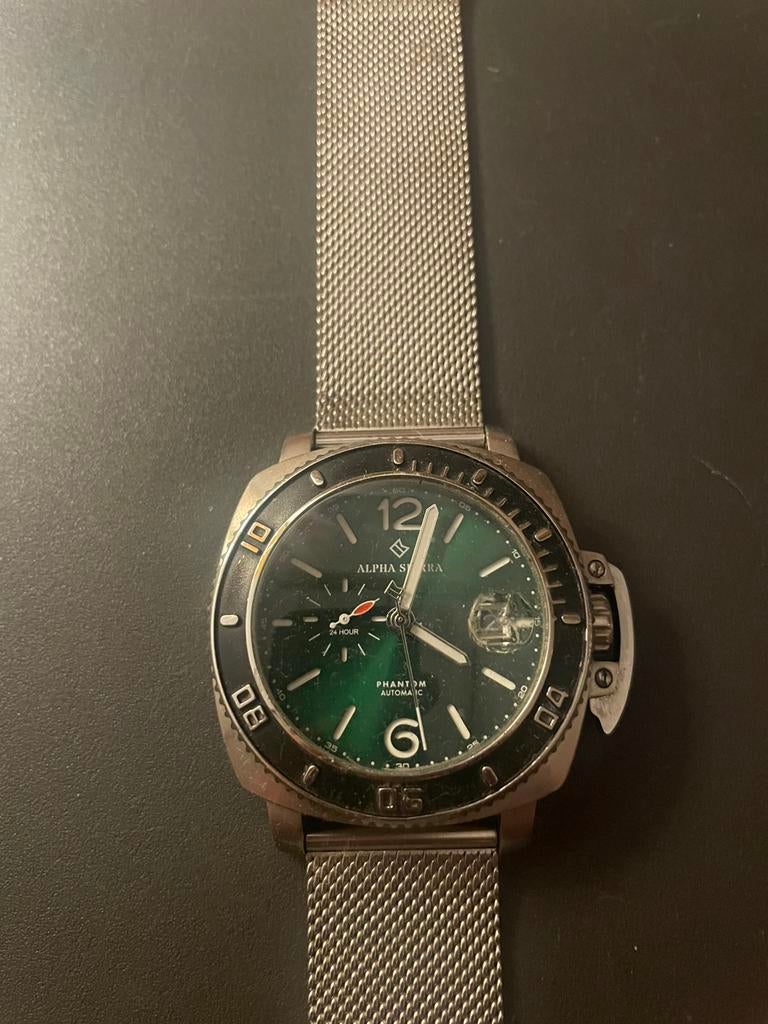 29 déc. 25N ancyHerzele - Alpha Sierra Phantom EA-001 automatisch horlogeMooi automatisch horloge van het merk alpha sierra (model phantom ea-001). Het horloge is in goede staat en werkt perfect. Enkel lichte gebruikssporen op de metalen band door normaal dragen. SpecificaComme neuf Enlèvement