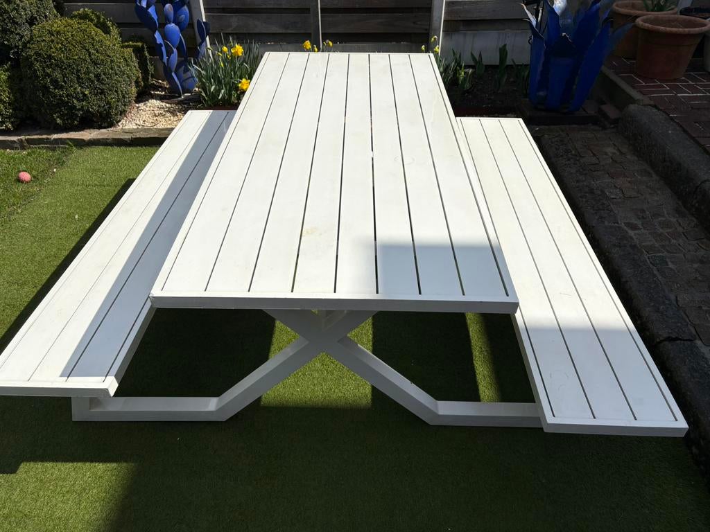 28 mars 26apollon-iluminacion-bvToute la Belgique - Mundo Vinci Basics Table de pique-nique en aluminium blancà vendre pour cause de rénovation : mundo vinci basics - table de pique-nique extérieure mundo en aluminium blanc - l 200 x l 174 x h 75 cm très bon état, petite décoloration prix demandé 350 eurosComme neuf Enlèvement