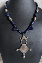 Aujourd'huiPub au topCatawikiToute la Belgique - Argent, Lapis lazuli, perles de verre - Collier - TouaregRare et splendide collier touareg du niger, avec un ancien pendentif dit croix du sud ou croix d’agadez en alliage et des perles d’argent, de lapis-lazuli et de verre; longueur ouverte 51 cm, hauteur